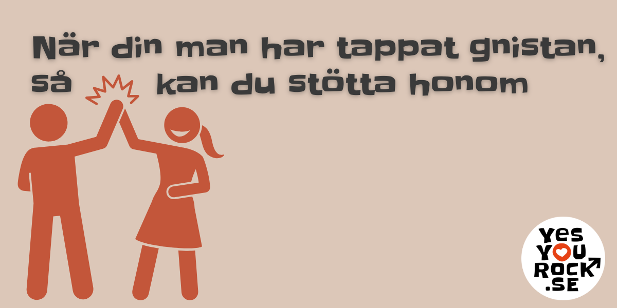 När livet känns tungt är det lätt att allt börjar se övermäktigt ut. Då kan tanken på stora förändringar snarare skapa motstånd. Uppmuntra därför din man att ta små steg istället för att sätta press på stora beslut. Det kan handla om att börja röra på sig lite mer, ringa en gammal vän, eller göra något han brukade tycka om. Varje litet steg bygger en känsla av kontroll och framgång. Påminn honom om att det inte handlar om att förändra hela livet över en natt, utan att börja med något enkelt som gör skillnad här och nu.
