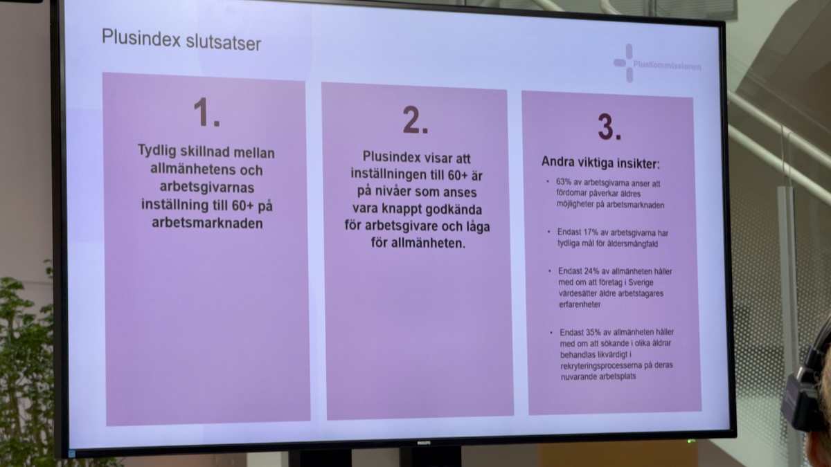 Attityderna till 60+ på arbetsmarknaden är långt ifrån vad de borde vara. Det visar Plusindex – ett nytt årligt index som Pluskommissionen låtit ta fram och som är först med att mäta och analysera attityderna till äldre arbetskraft på den svenska arbetsmarknaden. Detta samtidigt som samhällskostnaden för utestängda plussare uppgår till över 70 miljarder kronor per år.